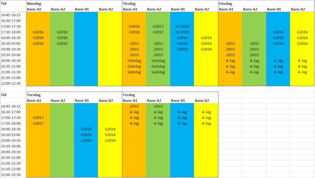 Treningstider - Inne